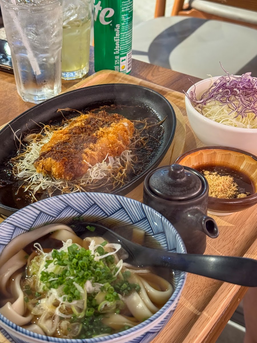 Decent quality udon ramen with peaceful atmosphere. The prices are relatively high due to the niche food menu; however, recently they offer around 250 THB/ set which includes the following: 1. Tonkatsu *1 Dish 2. Udon Ramen *1 Bowl 3. Cabbage *1 Bowl Remark: best part is (2) and (3) are refillable Definitely should try it out and more importantly it opens 24/7